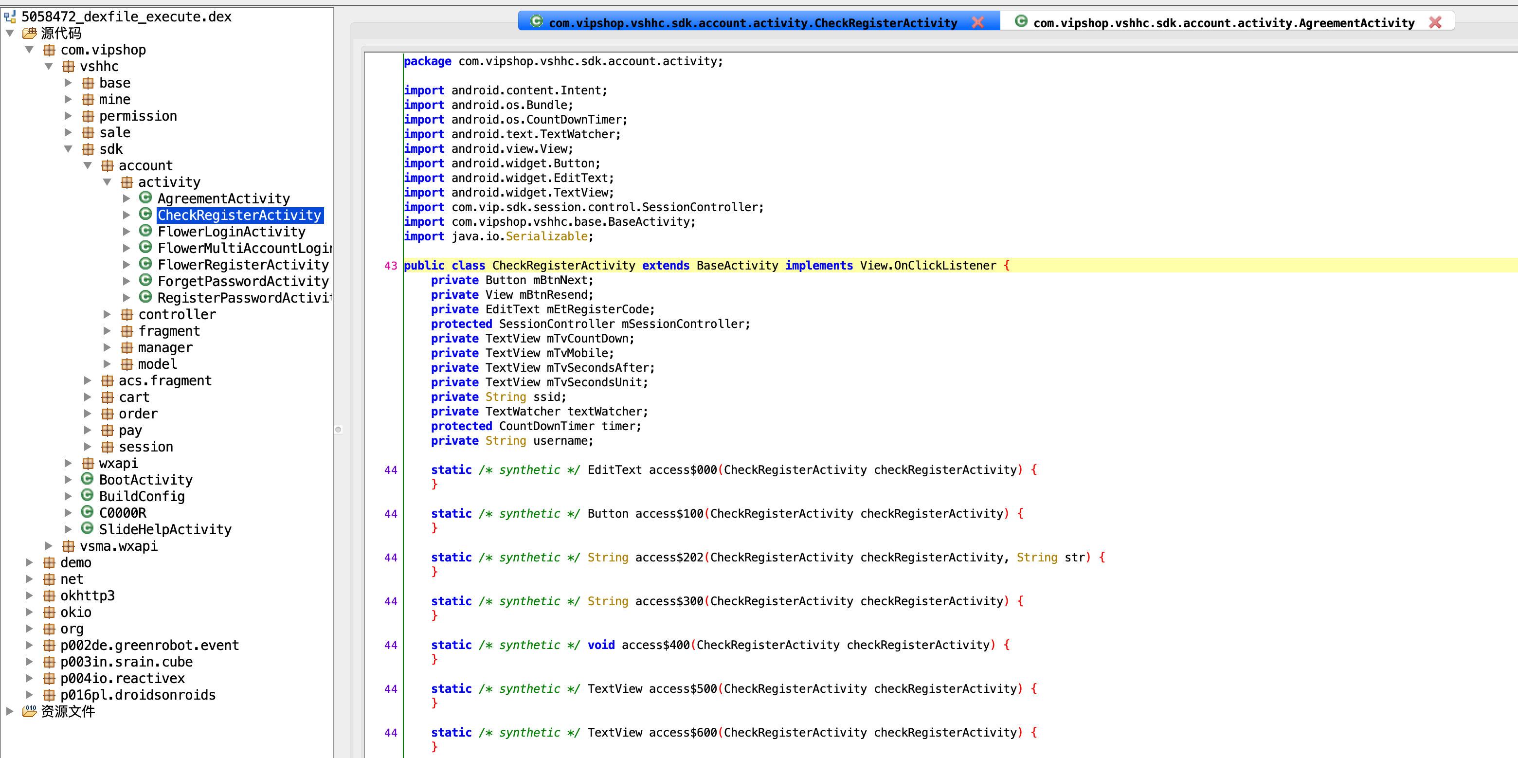 安装应用,启动应用,会在私有目录下生成dump下的dex和函数体文件